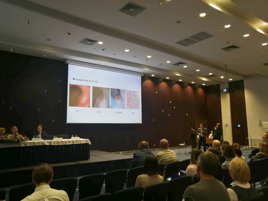 李鵬教授分享了關(guān)于染色技術(shù)對消化道早期癌發(fā)現(xiàn)的應(yīng)用及重要性,并向全體與會人員介紹并認(rèn)可中國高清電子內(nèi)鏡HD–500,及其光電復(fù)合染色技術(shù)VIST的臨床應(yīng)用和價值,現(xiàn)場反響熱烈,紛紛提問。李鵬教授專業(yè)的解答與分享受到現(xiàn)場與會俄羅斯專家及醫(yī)護(hù)人員的認(rèn)可并報以熱烈的掌聲。