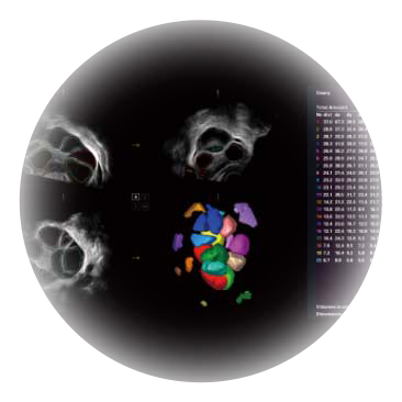卵泡結(jié)構(gòu)的自動識別和測量,可顯示多組測量數(shù)據(jù)。