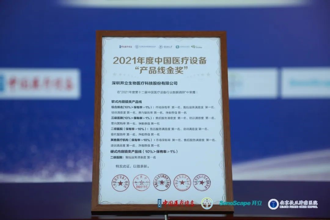 同時,開立醫(yī)療還榮獲了中國醫(yī)療設(shè)備“產(chǎn)品線金獎”,在超聲影像類產(chǎn)品線與內(nèi)窺鏡類產(chǎn)品線評比中名列前茅,其中軟式內(nèi)窺鏡類產(chǎn)品線憑借卓越的產(chǎn)品質(zhì)量、優(yōu)秀的服務(wù)滿意度及市場保有率等多個維度上均排名第一。