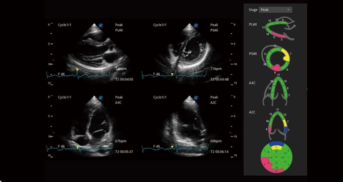 支持運(yùn)動(dòng)和藥物負(fù)荷協(xié)議、多心動(dòng)周期存儲(chǔ)選擇,為臨床觀察心肌負(fù)荷狀態(tài)下的室壁節(jié)段運(yùn)動(dòng)、評(píng)估心肌缺血狀態(tài)提供更多的解決方案。